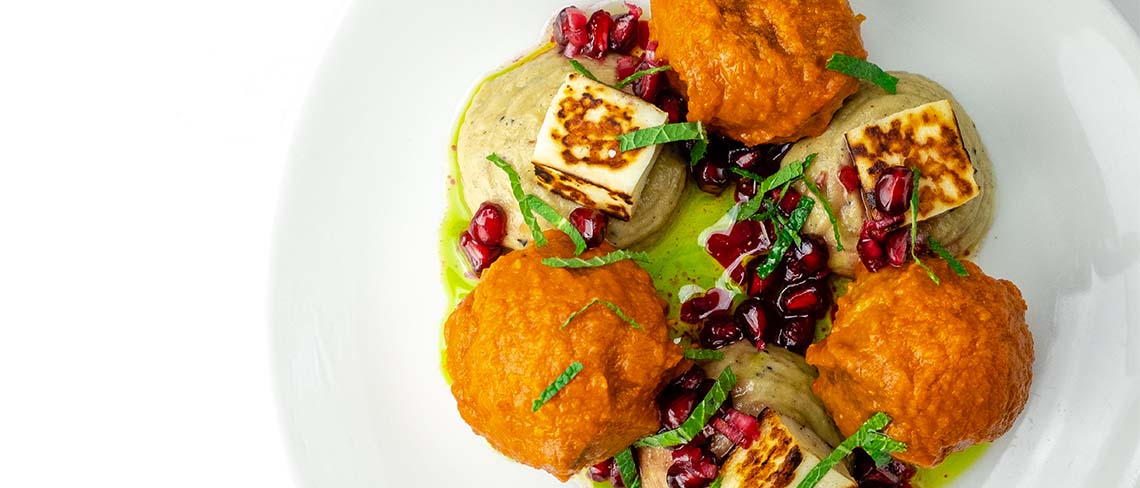 - Lamb and halloumi meatballs – with burnt aubergine, pomegranate and mint (£7.00)