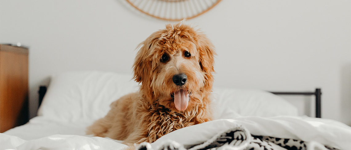 It’s important to be consistent with your pet and set clear boundaries; namely, whether they are allowed on your bed or not. If your pet fights for space on your bed in the night, try offering a dedicated bed on the floor. If they wake you too early wanting to play, asking for food or needing to be let out, they ideally need to sleep in a separate room.