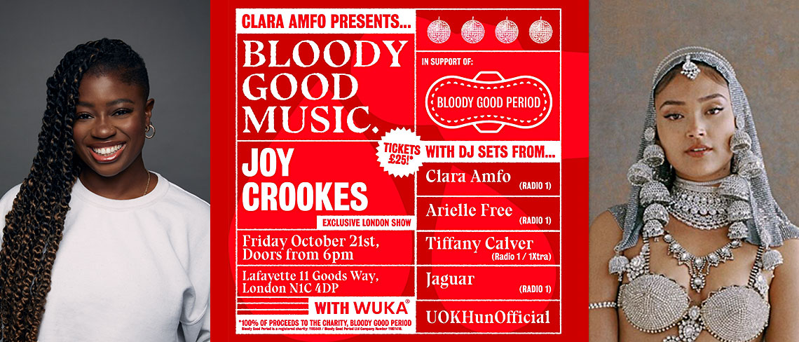 Headlined by Joy Crookes and with DJ sets from Clara Amfo & Friends, the event will raise funds for menstrual equity charity, Bloody Good Period, this October.