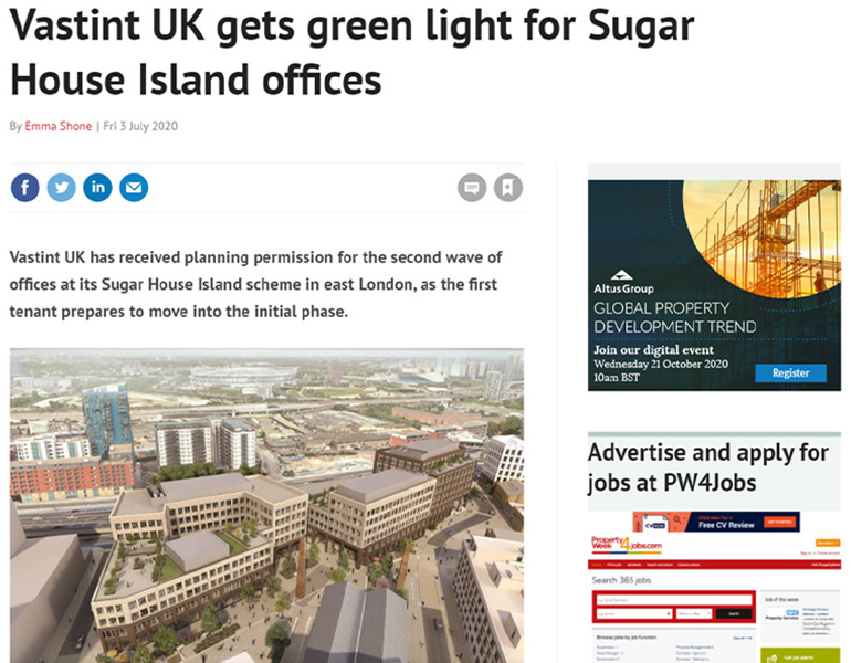 Highly targeted and carefully tailored with our message in mind, our work with Vastint UK successfully put Sugar House Island on the map for those living and working in London.