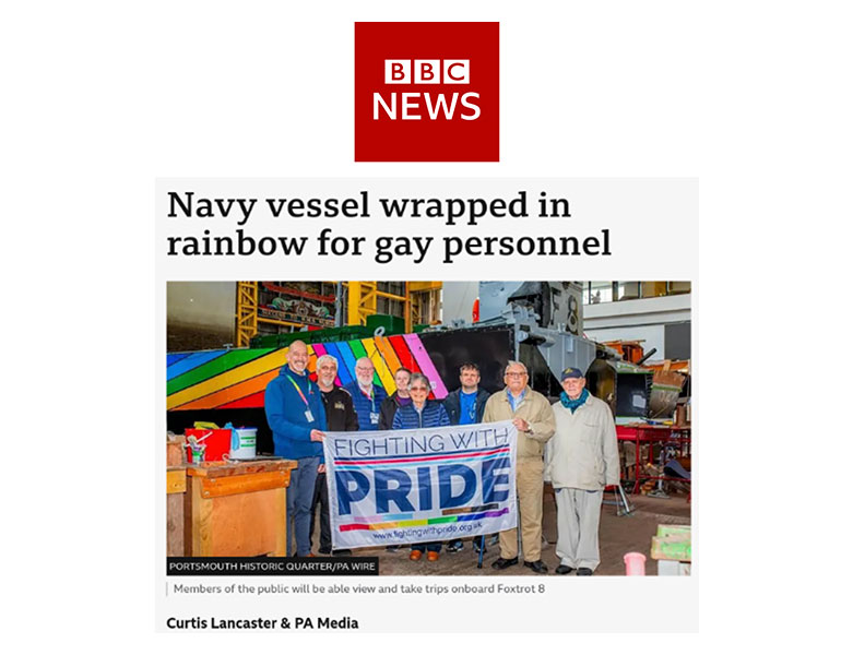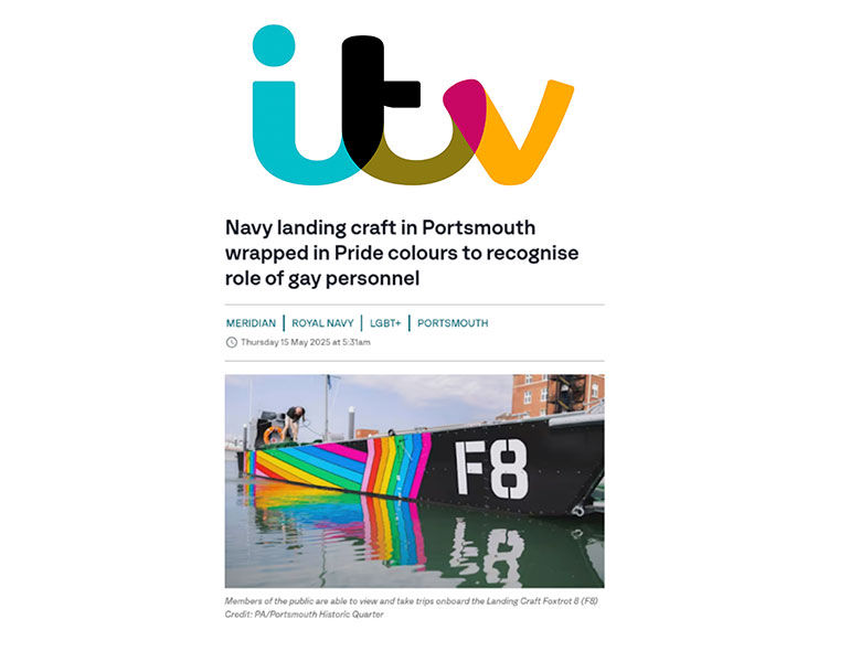 In May 2025, Portsmouth Historic Quarter and LGBTQ+ Veterans charity Fighting with Pride came together to wrap an iconic war vessel, Landing Craft F8, in Pride colours to mark the 25th anniversary of the lifting of the “gay ban” in the military.